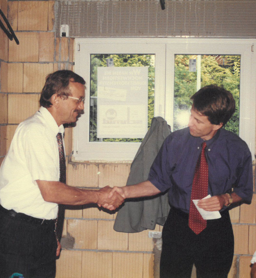 Die teba der Neunzigerjahre lässt sich gut als langjähriges Team unter der Führung von Heribert Geiger mit tollen Projekten beschreiben. Das Schäferhofareal wurde mit einer Bauträgergruppe unter der Leitung von Heribert Geiger bebaut. Wichtig war sozial geförderter Wohnraum mit Abschreibungsmodellen. Es gab ein bedeutendes Richtfest, an das sich viele noch heute erinnern können. Bis heute sind diese Feste Tradition bei der teba. Ende des Jahrzehnts war dann im Baugebiet Leimgrube Baubeginn und der Verkauf erfolgte mit Werner Schad.