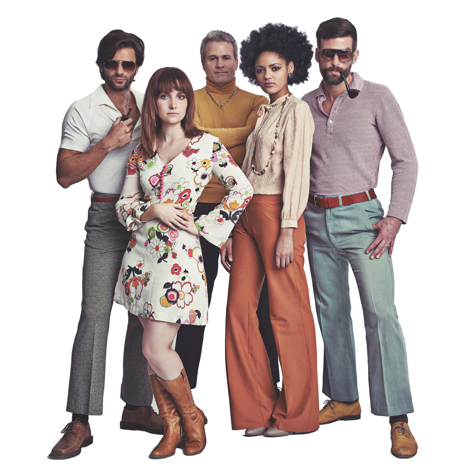 Die Mode der Seventies war geprägt von den Ausläufern der 68er-Bewegung. Flower Power mischte sich mit Disco. Fließende, weitschwingende Maxiröcke und -kleider, Tunikas – na klar. Aber vor allem Schlaghosen. Muster waren wichtig, Blumen, fließende Formen und psychodelische Ornamente. Auch auf der bestickten Jeans, dem Kleid oder auf dem Rock.